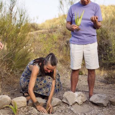 Am Sonntag, den 23. Juni, feierten wir unser kleines Erdfest in Andalusien – mit 13 Teilnehmer*innen und 13 Aloes, Kindern einer »Mutteraloe« (erste Bilder). Nacheinander setzten wir die Pflänzchen ein, jedes mit einem Zettel, auf dem ein Wunsch für die Erde stand.