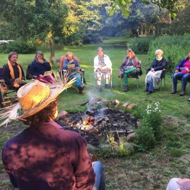 Die Wärme des Nachmittags, die Kühle des Abends, das wärmende Feuer, der lange Schein der untergegangenen Sonne im Hintergrund, zusammen das Da-Sein teilen und bei allen die Dankbarkeit und die verbindende Sehnsucht mit der Erde/Natur spüren. Impulse für die Erfahrung eines WIR jenseits der Getrenntheit.