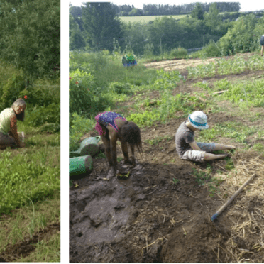 Am Samstag fanden Menschen im Gemeinschaftsgarten, bei Renovierungsarbeiten an der Wirkstatt sowie für die Verköstigung zwischen Arbeiten, Feiern und Sein zusammen. Tun und Nicht-tun ist eins. Die Kinder nahmen den Kontakt zur Erde gründlich über ein Schlammbad auf. Außerdem gab es eine gelungene innere Vernetzung mit dem Erdfest in Weißenseifen und dem Integralen Salon in Berbourg.